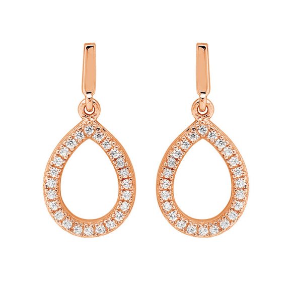 Open tear drop earrings with rose gold plating.