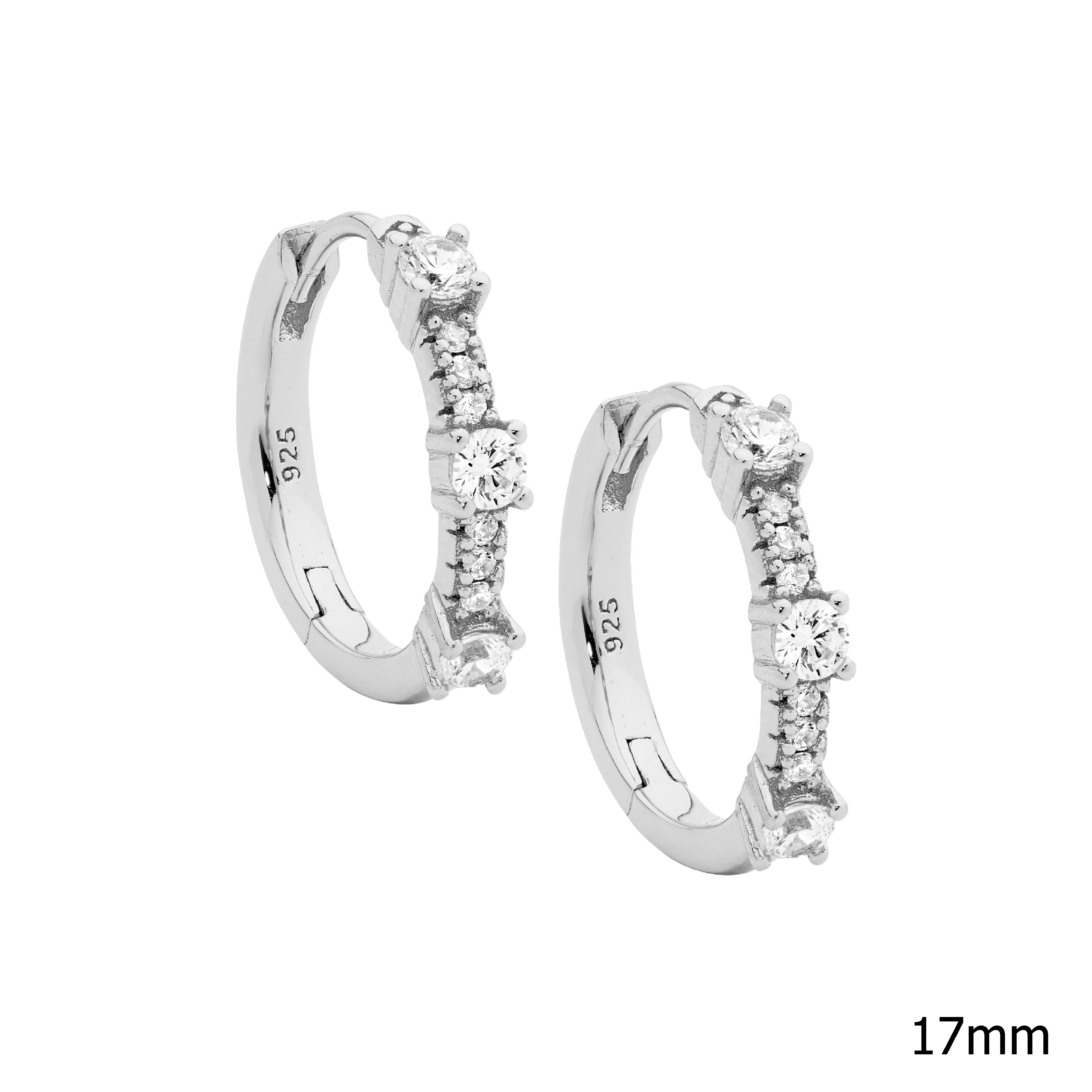 Sterling silver 17mm hoop earrings set with cubic zirconias.