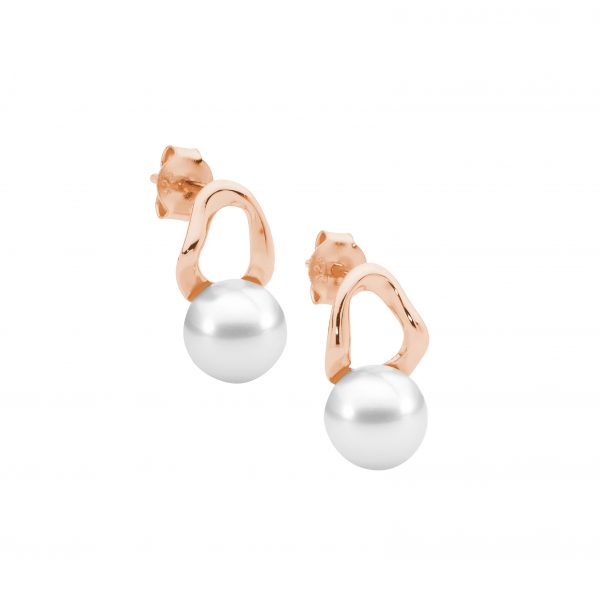 Sterling silver earrings set with freshwater pearl and rose gold plated.