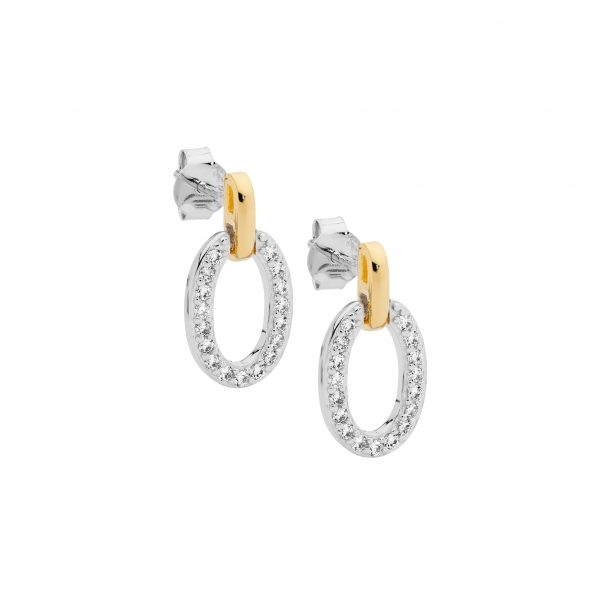 Sterling silver earrings set with cubic zirconias and gold plating.