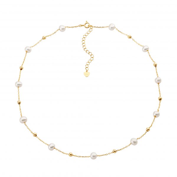 Sterling silver 40cm (plus 5cm extension) necklace with freshwater pearls and gold plating.