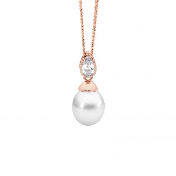 Freshwater pearl pendant with bezel set pear cubic zirconia.