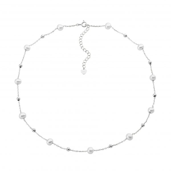 Sterling silver 40cm (plus 5cm extension) necklace with freshwater pearls.