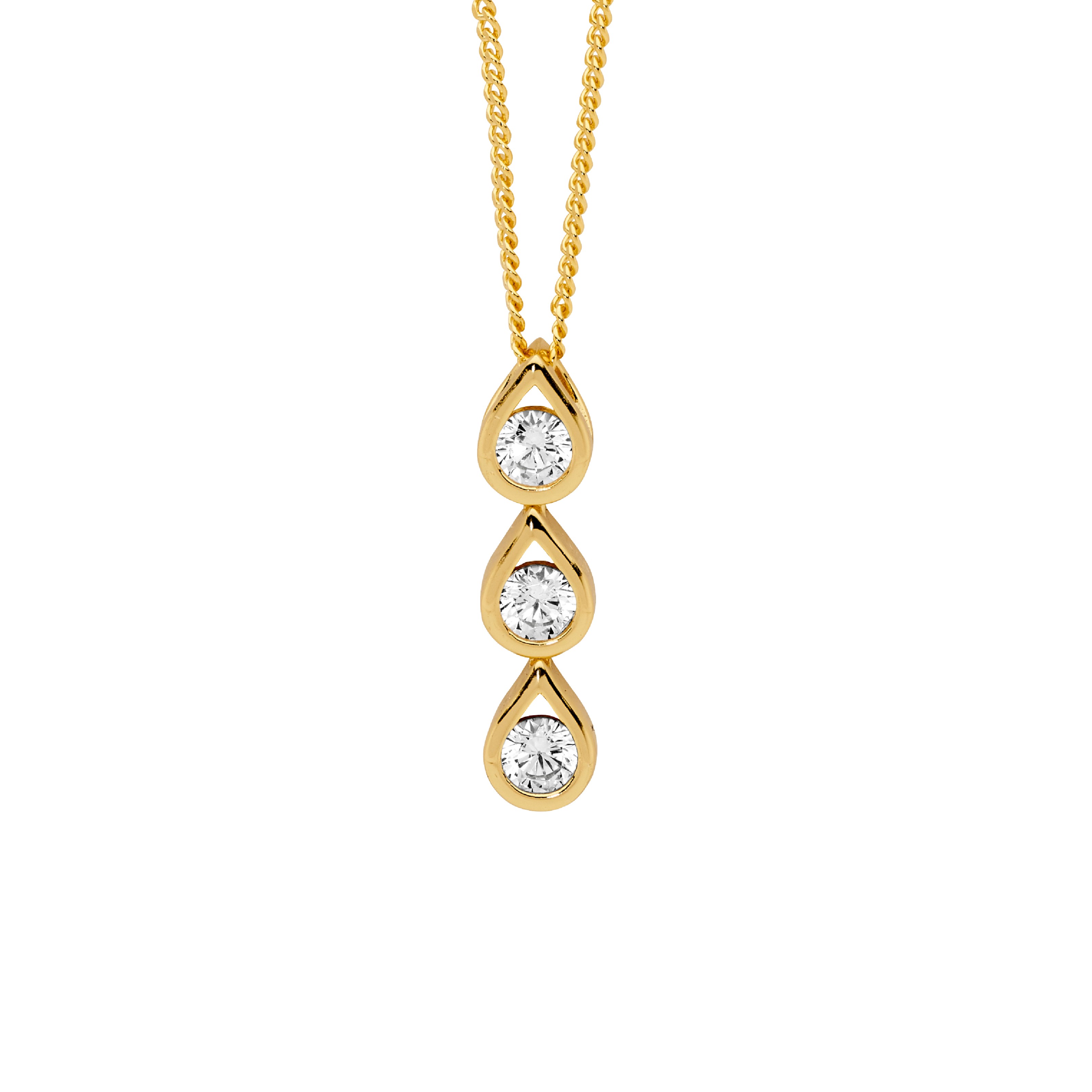 Tear drop pendant set with cubic zirconias.