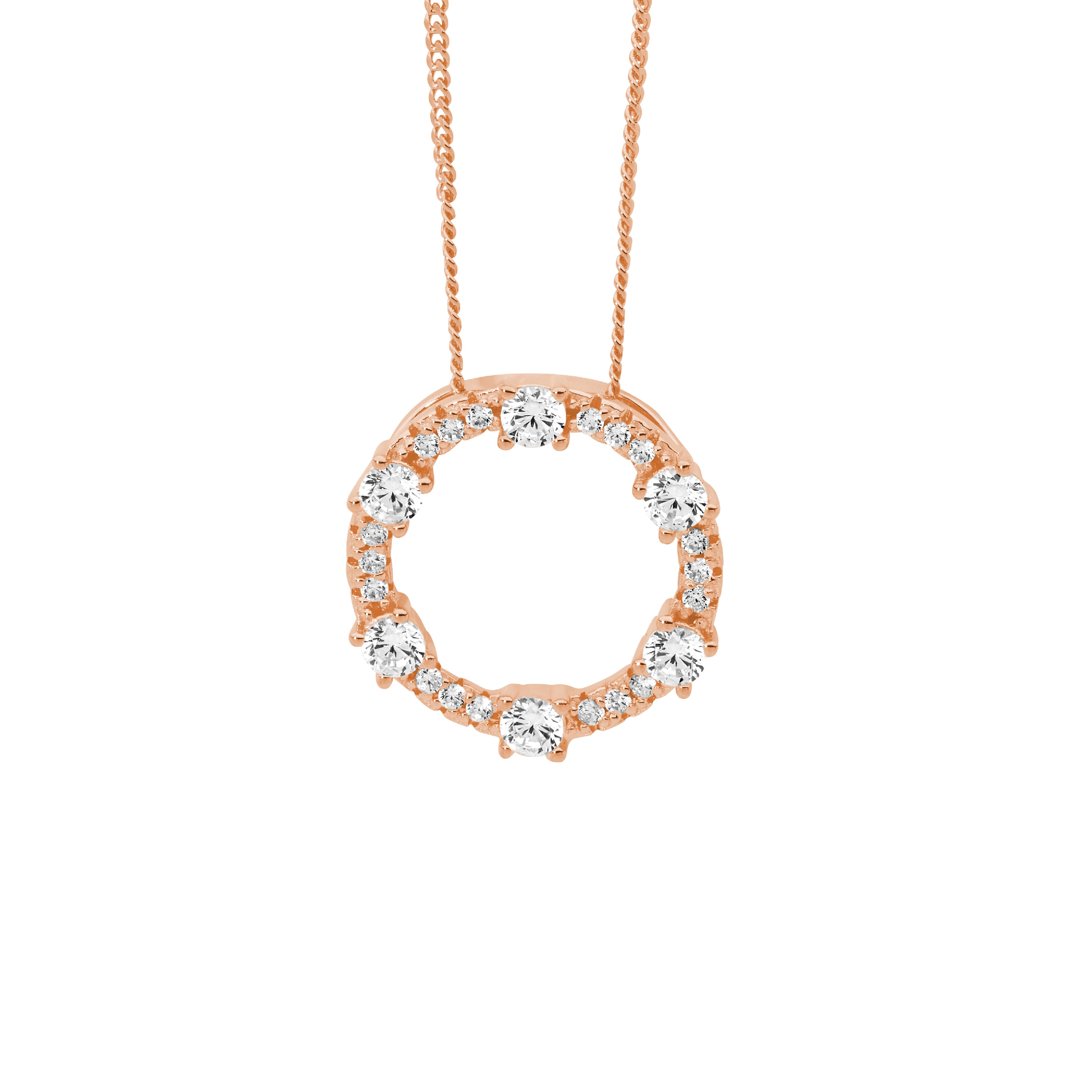 17mm circle pendant set with cubic zirconias.